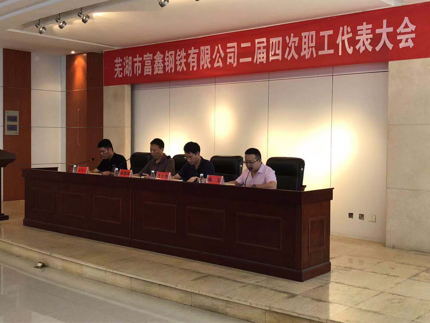 2019年8月6日上午9時蕪湖市富鑫鋼鐵有限公司第二屆第四次職工代表大會在雄壯的國歌聲中隆重開幕!受公司黨委書記王文奇同志委托,陳玉同志代表公司黨委對大會致辭!會上全體工會委員、職工代表精神飽滿,積極審議。并認真舉手表決,全票審議通過了公司2019版《員工手冊修訂草案》和工會主席王少華同志作的題為《有效提升工會服務意識 共譜和諧發(fā)展新篇章》工會工作報告。最后由公司領(lǐng)導吳國鴻同志致大會閉幕辭!此次大會回顧了2018年公司各部門全年的工作,并且號召全體員工在公司黨委的堅強領(lǐng)導下,統(tǒng)一思想,堅定信心,攻堅克難,開拓創(chuàng)新,全力以赴,為全面實現(xiàn)2019年公司生產(chǎn)發(fā)展目標而努力奮斗!